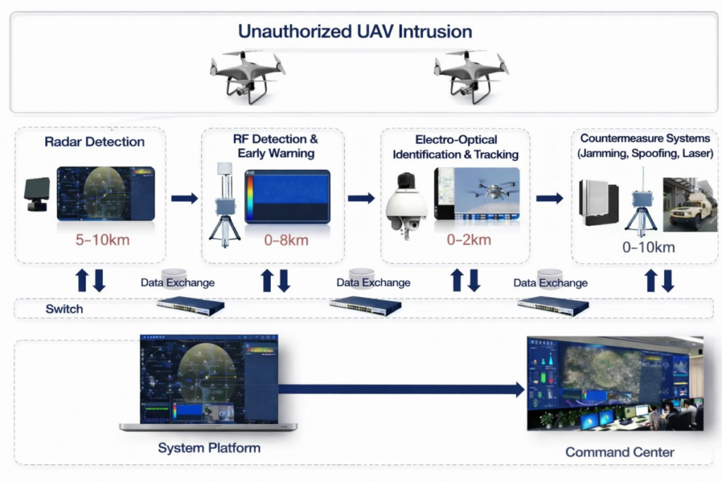 By combining RF detection, signal disruption, and navigation spoofing capabilities, the systems enable flexible response strategies for different operational requirements and environments.